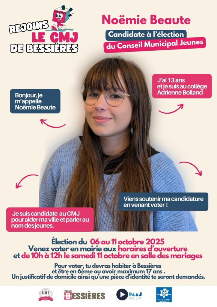 💡 Tu as déjà découvert les candidats, maintenant c’est à toi de décider qui représentera la jeunesse bessierraine pour la mandature 2025 – 2027.