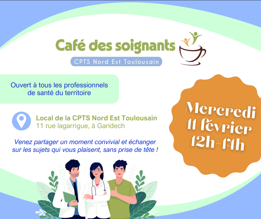 Dans un contexte où l’usure professionnelle et les enjeux de santé mentale des soignants sont de plus en plus présents, la CPTS Nord Est Toulousain met en place des Cafés des soignants, réservés à ses adhérents 🥰