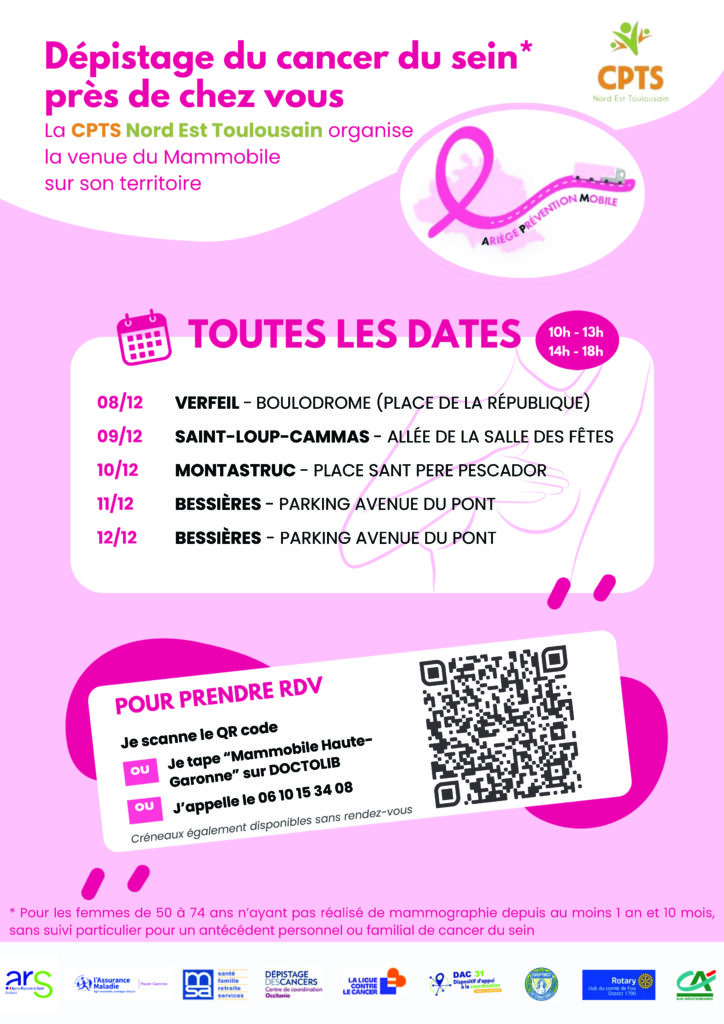 La CPTS Nord-Est Toulousain organise la venue du Mammobile sur plusieurs communes du territoire, afin de faciliter le dépistage du cancer du sein au plus près des habitantes.
