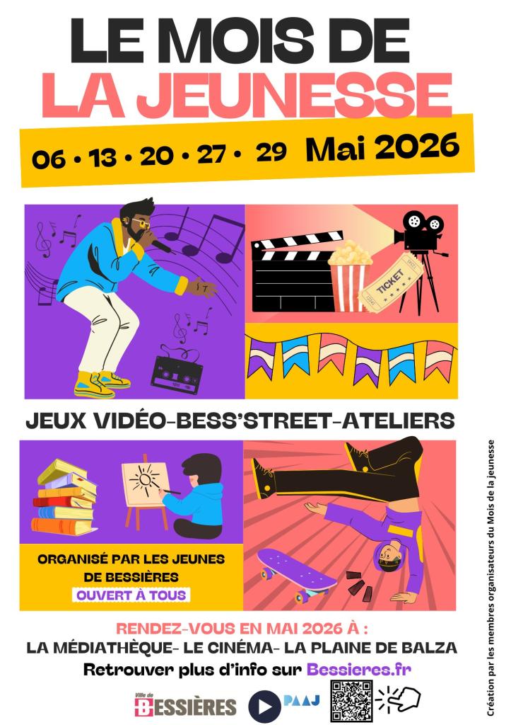 Avis à la jeunesse de Bessières ! Préparez-vous, le mois de mai s’annonce intense. Que tu sois un créatif dans l’âme, un gamer compétitif, un fan de frissons ou simplement à la recherche d’un moment sympa entre amis, le Mois de la Jeunesse est fait pour toi ! Découvre le programme !