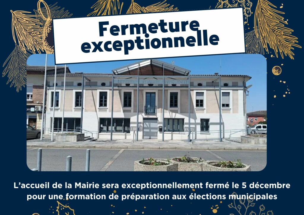 L’accueil de la Mairie sera exceptionnellement fermé le 5 décembre pour une formation de préparation aux élections municipales